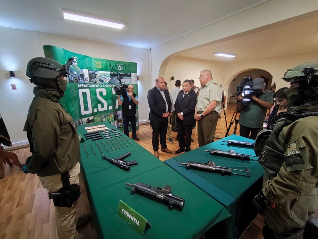 El General Miguel Herrera, jefe de Zona Carabineros Araucanía resaltó que “estamos en presencia de subametralladoras de alto poder de fuego con una modalidad, para que entiendan ustedes, muy parecida a la UZI que utiliza Carabineros de Chile, la cual tiene dos configuraciones, el calibre 9 que lo utiliza generalmente la policía argentina y el calibre .45 que lo utiliza el ejército argentino”, señaló el General Herrera.